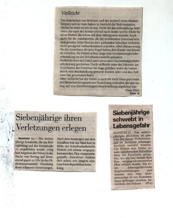 Am Donnerstag war ich noch kurz Süßes holen, damit wir einen gemütlichen Fernsehabend mit knabbern verbringen konnten. Als ich im Wohnzimmer saß, kam Vivien, setzte sich zu mir und fragte, ob Kinder sterben können. Ich habe ihr erklärt, das der liebe Gott nur alte Menschen holt. Ich wollte nicht darüber Reden, weil ich glaubte, dass uns so etwas nicht passieren kann. Hätte ich sie doch nur gefragt, warum sie das wissen will. Patricia saß im Schlafzimmer und sah sich die Simpsens an. Am nächsten Morgen dann das übliche Gezeter. Vivi beeile dich, sonst komme ich zu spät zur Schule. Schnell noch ein Kuss und ein letztes Winken. Das war das letzte mal, das ich dieses alltägliche Bild sehen durfte. Keine Umarmung mehr. Am Vormittag, gegen 09:30 Uhr, rief Tricis Freundin Noirin mich an und fragte, ob sie mit zu uns kommen durfte. Na Klar, komm man mit dem Bus. Noirin erreichte jedoch ihre Mutter nicht, um zu fragen, aber das erfuhr ich erst Wochen später. 11:55 Uhr kam ein Kombi auf den Hof gefahren. Der Mann fragte, ob ich eine Tochter hätte die Patricia heißt. Sie wäre an der Haltestelle angefahren worden. Er fuhr mich hin. Es sind nur 200 m von uns zu Hause und da lag meine kleine Maus auf der Straße. Man hatte ihr einen Verband um den Kopf gelegt und Ihre Augen waren dunkel und nahmen mich nicht wahr. Aus ihrem Mund und Nase lief etwas Blut. Ich durfte nur ihre Hand halten. Bis der Notarzt kam, dauerte es meinem Gefühl nach eine Ewigkeit. Als er dann ankam, konnte ich die Hoffnungslosigkeit spüren. Ein Rettungshubschrauber wurde angefordert. Es hat dann noch fast eine Stunde gedauert, bis man Patricia Transportfähig gemacht hatte. Reiner war im Fernverkehr und ein Freund sorgte dafür, dass er schnellst möglich zum Krankenhaus kam. Als der Arzt uns dann zu sich ins Zimmer bat, erklärte er, das es sehr schlecht um sie stand. Patricia hatte schwerste Kopfverletzungen und sie würde, wenn sie es schaffen sollte, schwerst behindert sein. Hauptsache war für uns, das sie wieder nach Hause kommt. Wir durften noch kurz zu ihr. Da lag meine Maus und wir fühlten uns unendlich hilflos. Man schickte uns weg, damit wir noch ein paar Sachen holen sollten. Als wir gegen 17:00 Uhr wieder im Krankenhaus ankamen, wurden wir erneut zum Arzt ins Zimmer gebeten. Er teilte uns diesmal mit, das sie die Nacht nicht überleben würde und das wir Abschied nehmen müssten. Als wir bei Patricia am Bett saßen, liefen Tränen aus ihren Augen. Tränen des Abschieds und Tränen aus Blut. Ich rief bei Opa an und bat ihn, mit Dennis und Marco zum Krankenhaus zu kommen. Sie sollten jedoch selbst entscheiden, ob sie Abschied nehmen wollen. Oma, Opa, Tante Steffi, Dennis und Marco kamen. Sie haben jeder für sich noch einen Moment bei Trici verbracht. Als sie sich verabschiedeten, kam Gisela (die Tagesmutter) mit Ihrem Mann. Ich erlaubte Ihnen zu Trici zu gehen und Abschied zu nehmen. Leider hat sie den Platz an Patricias Bett nicht mehr verlassen. Ich hatte nicht die Kraft sie wegzuschicken. Reiner saß auf der anderen Seite und hielt Tricis Hand. Ich ging hilflos im Flur auf und ab. Dann spürte ich, das sie gehen wollte und ich ging zu Reiner, hielt Trici Hand und sagte Ihr ein letztes mal, wie sehr ich sie liebe. Dann ging Ihr Herzschlag weg und sie war fort. Manchmal glaube ich, dass es nur ein böser Traum ist Und manchmal glaube ich, das wir 7 Jahre mit Patricia leben durften, war nur ein schöner Traum. Wir wussten unser Glück zu schätzen und trotzdem zerbrach es. Nichts wird wieder wie es war. Sie fehlt uns allen so sehr.